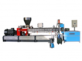 在加熱和混合的作用下,材料在擠出腔內形成高壓狀態,并通過模具的作用,將材料擠出成型,形成顆粒產品。主要組成部分包括驅動系統、傳動系統、加料系統、加熱冷卻系統、真空排氣系統、切粒系統等。